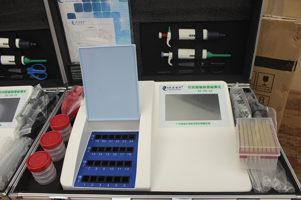 該檢測設備由“RS-PR-24農(nóng)藥殘留快速檢測儀”、“食用農(nóng)產(chǎn)品質(zhì)量安全風險管理系統(tǒng)”兩部分組成,主要用于日常食用農(nóng)產(chǎn)品檢測。該設備具有快速準確檢測農(nóng)產(chǎn)品農(nóng)藥殘留情況、實時上傳檢測數(shù)據(jù)等特點。