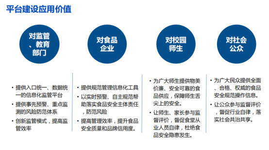 除此之外,現(xiàn)場(chǎng)智能化設(shè)備還會(huì)自動(dòng)針對(duì)工作人員的非規(guī)范操作進(jìn)行現(xiàn)場(chǎng)教育和行為糾正,督促工作人員逐漸養(yǎng)成良好的行為規(guī)范,確保因責(zé)任意識(shí)不強(qiáng)而導(dǎo)致的食安風(fēng)險(xiǎn)存在。整套系統(tǒng)采用物聯(lián)網(wǎng)、云計(jì)算技術(shù)、視頻分析技術(shù)、大數(shù)據(jù)分析技術(shù)等,全程監(jiān)控整個(gè)食堂食品制作過(guò)程,讓食物制作環(huán)節(jié)360度無(wú)死角呈現(xiàn)。此系統(tǒng)不僅有利于食堂、餐飲等企業(yè)管理人員、上級(jí)主管部門及政府市場(chǎng)監(jiān)管部門實(shí)現(xiàn)高效監(jiān)管,更為保障食堂食品安全提供了更為有力的技術(shù)保障!