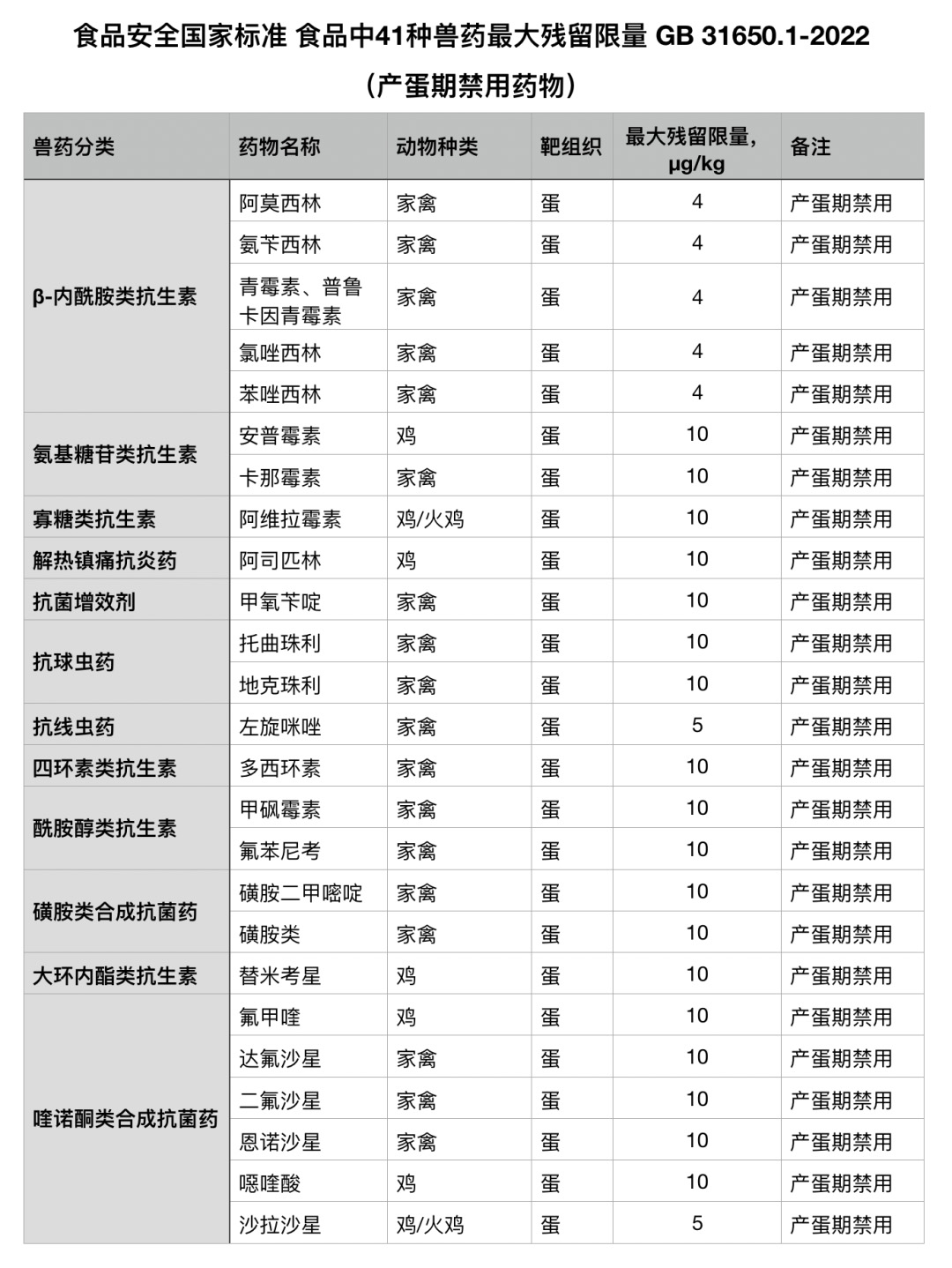 1、GB31650-2019中規(guī)定產(chǎn)蛋期禁用藥物25種;