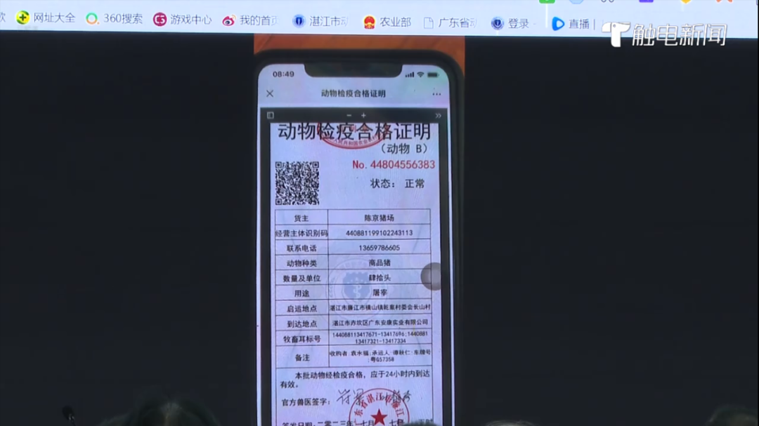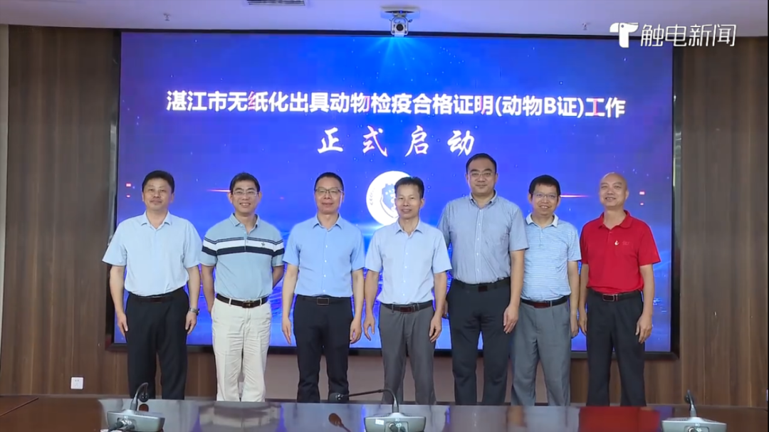 2023年7月7日, 湛江市無紙化出具動(dòng)物檢疫合格證明和動(dòng)物B證試點(diǎn)工作正式啟動(dòng),成為廣東省首個(gè)在動(dòng)物產(chǎn)地檢疫環(huán)節(jié)實(shí)現(xiàn)無紙化出證的地級市,標(biāo)志著湛江動(dòng)物檢疫和獸醫(yī)行政監(jiān)管工作邁入無紙化時(shí)代。
