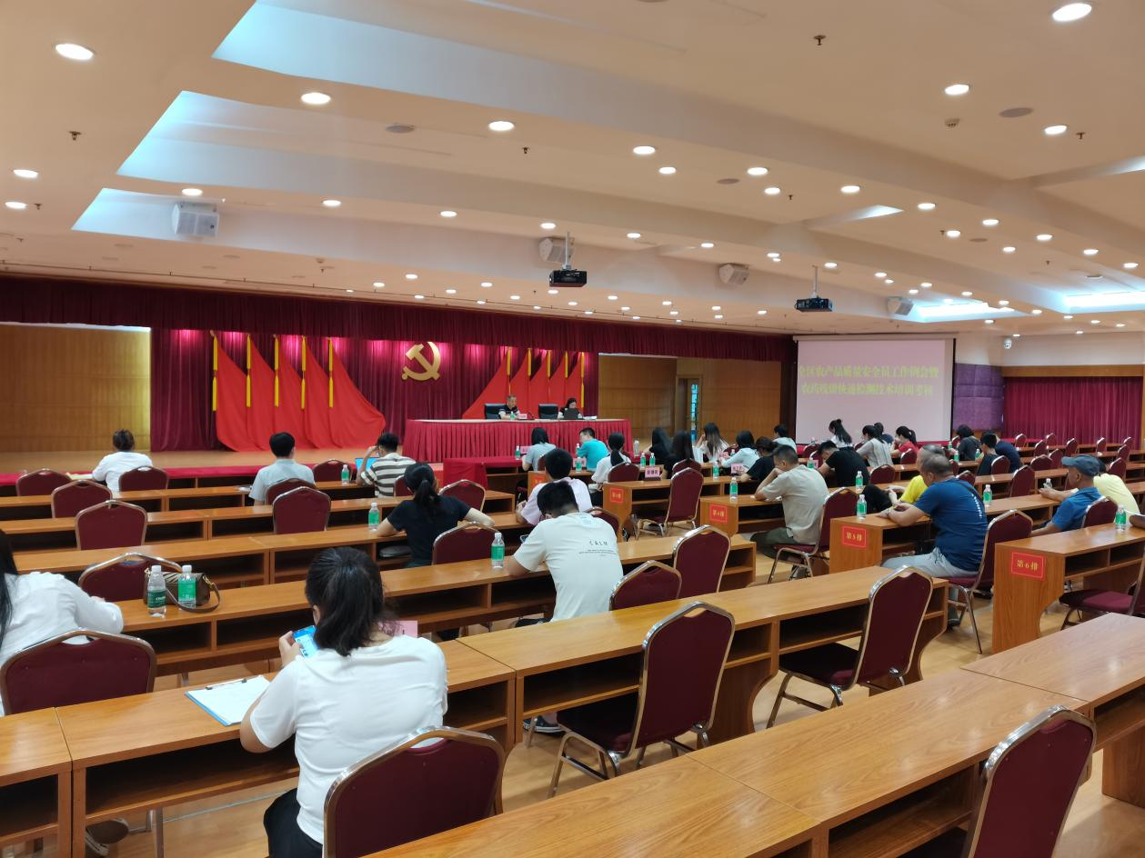 為強(qiáng)化廣州市農(nóng)產(chǎn)品質(zhì)量安全監(jiān)測體系建設(shè),提升各級(jí)農(nóng)產(chǎn)品質(zhì)量安全監(jiān)測機(jī)構(gòu)的檢測能力,切實(shí)保障產(chǎn)地農(nóng)產(chǎn)品質(zhì)量安全。2023年7月28日,”天河區(qū)農(nóng)產(chǎn)品質(zhì)量安全員工作例會(huì)暨農(nóng)藥殘留快速檢測技術(shù)培訓(xùn)考核會(huì)議“在天河區(qū)人民政府機(jī)關(guān)大院2號(hào)樓會(huì)議室召開。天河區(qū)農(nóng)業(yè)農(nóng)村局分管領(lǐng)導(dǎo)、全區(qū)各街道辦全體專職農(nóng)產(chǎn)品質(zhì)量安全員及農(nóng)業(yè)線口主要工作人員、全區(qū)各經(jīng)濟(jì)聯(lián)社農(nóng)業(yè)線口主要工作人員參與了本次培訓(xùn)會(huì)議。廣州瑞森生物科技股份有限公司技術(shù)培訓(xùn)同事受邀為本次培訓(xùn)班所有參訓(xùn)人員就“食用農(nóng)產(chǎn)品快檢技術(shù)介紹”課題做了培訓(xùn),并取得良好效果。